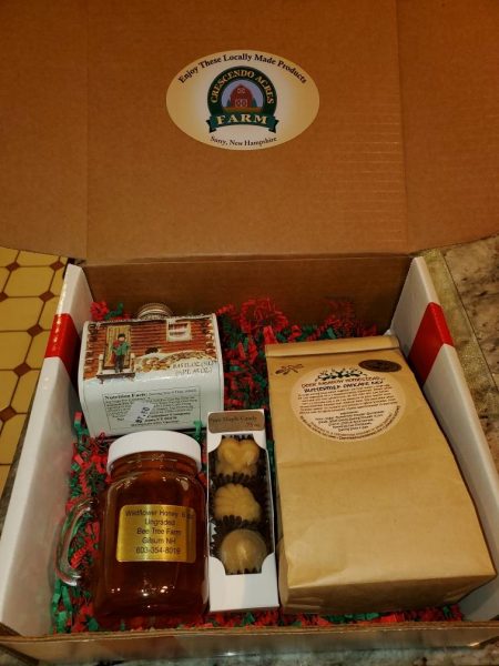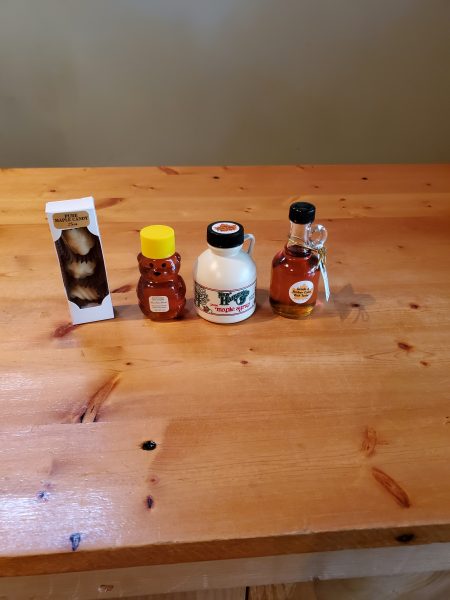 Various sizes of maple syrup, maple cream, maple coated nuts, maple candy, jams, honey,maple sugar. Just to list a few . Call us for pricing , and shipping costsĀ 603-352-9380